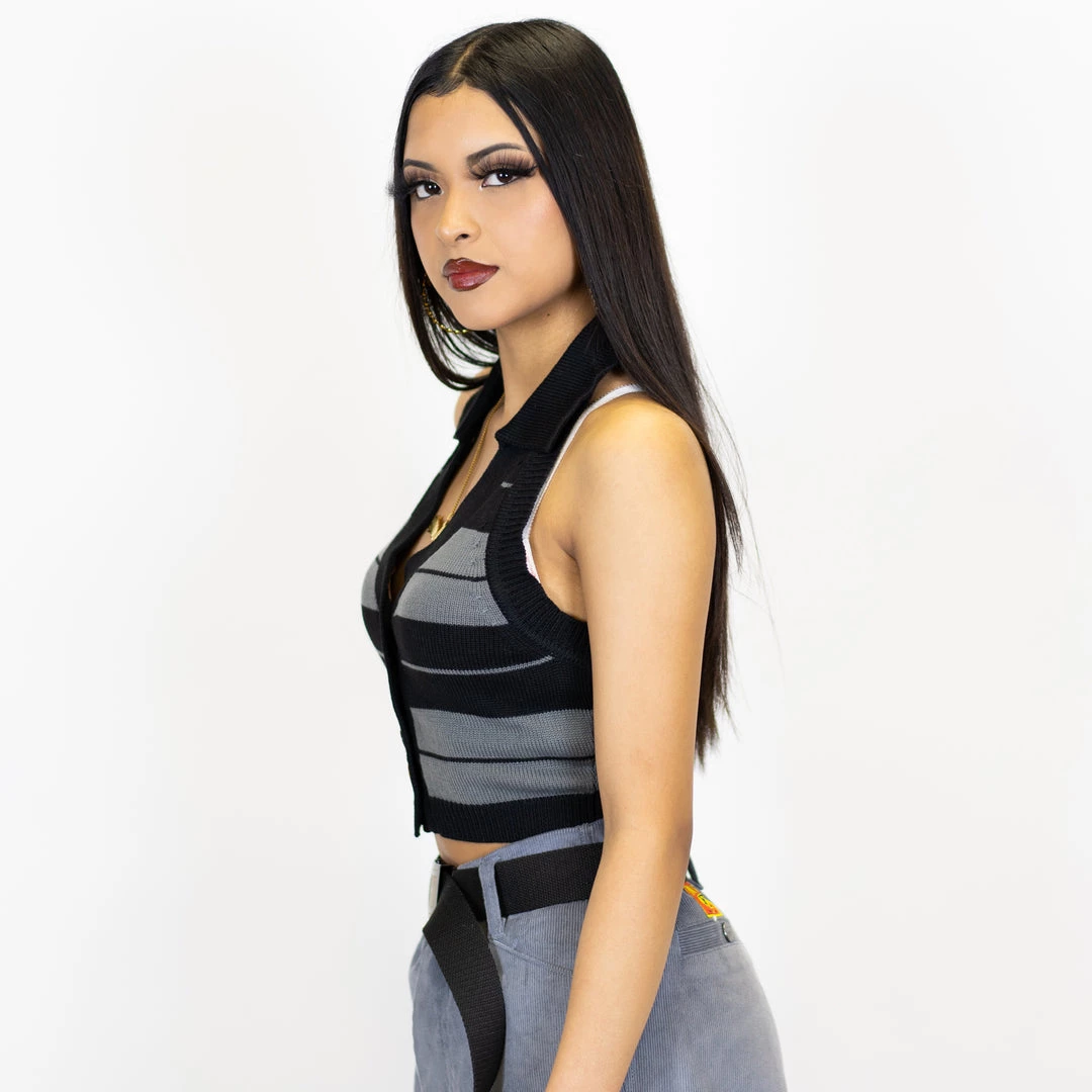 - Style:Â Collared Halter Top