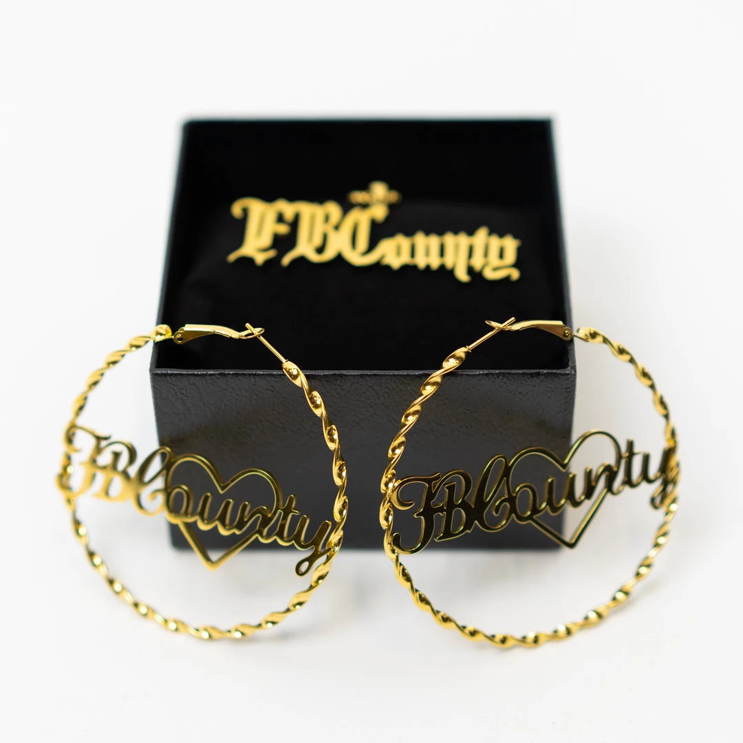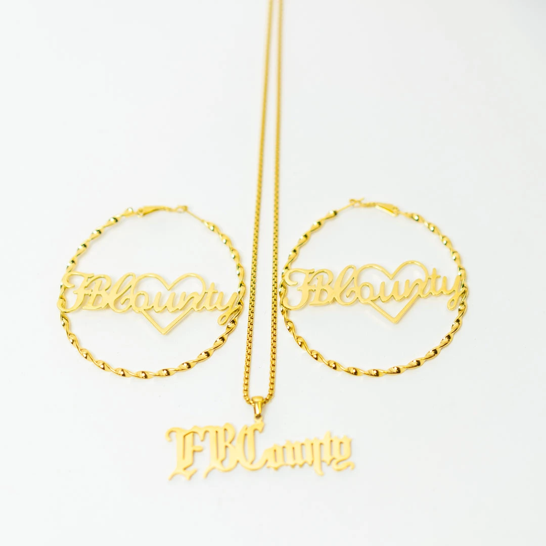 In this bundle you will receive 1 pair of FB County Hoop Earrings and 1 FB County Chain NecklaceÂ